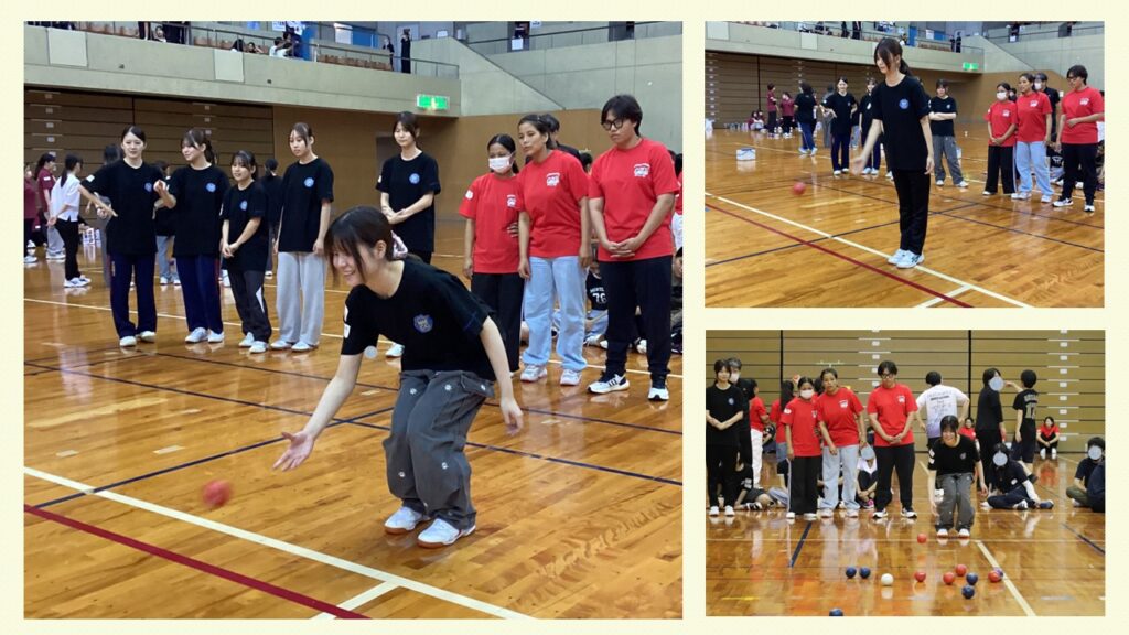 医療ビジネス科の学生たちにとっては、初めて体験するボッチャ。