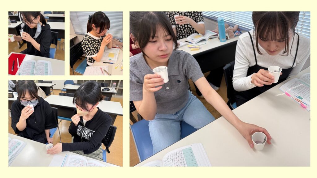 教科書を通して学ぶだけでなく、実際に視覚👀を使って色の違いを学んだり、嗅覚👃を使って匂いを学んびながら漢方に触れていきました。
