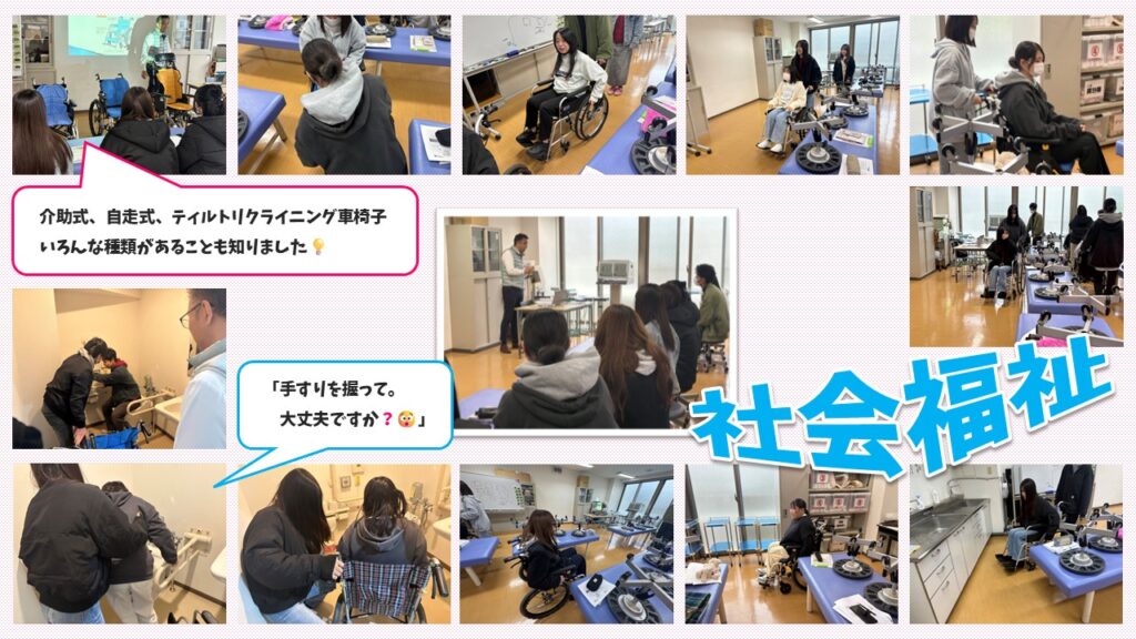 1年次の社会福祉の授業では、『車椅子♿』にChallengeしました💪🏻