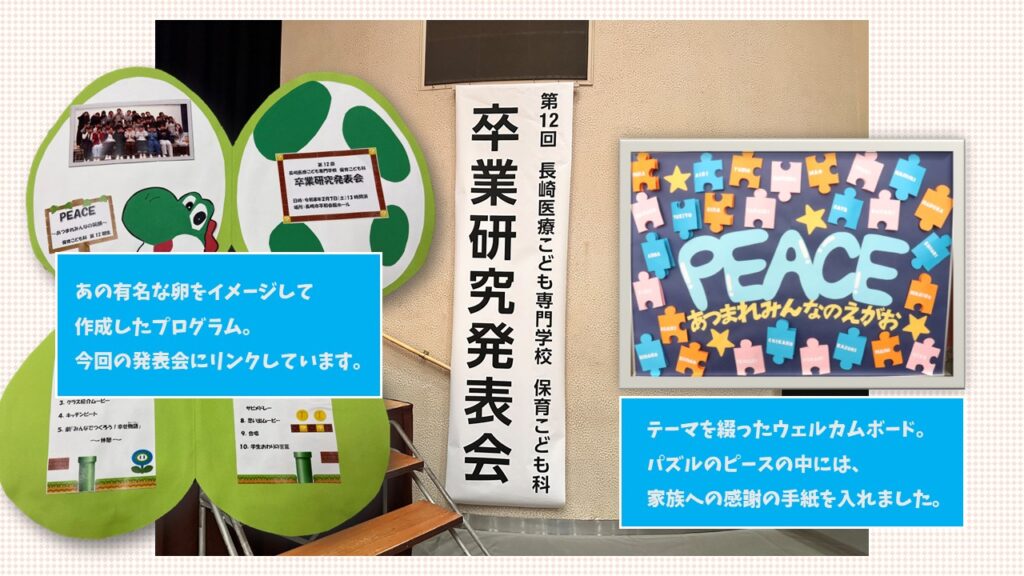 保育こども科3年間の学びの集大成、今回のテーマは《PEACE~あつまれみんなのえがお~》😆😆😆