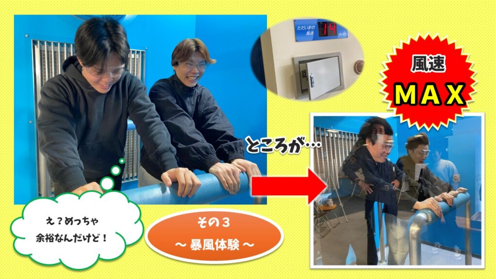 余裕だった二人も、さすがにMAX風速30m毎秒では倒れそうになっていました😫😫