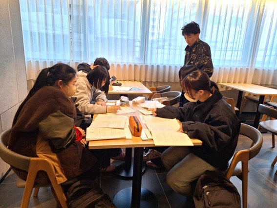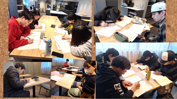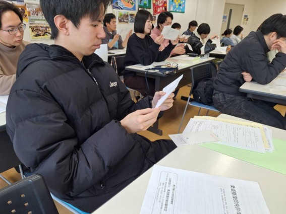 自己採点で合格した学生たちが登校してきました。