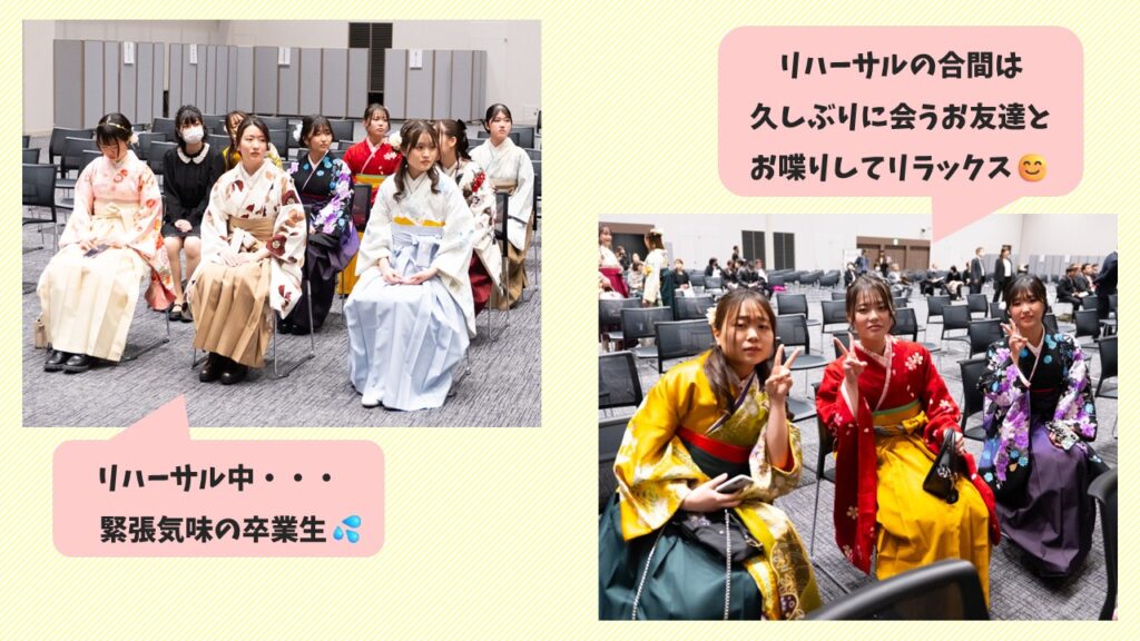 開式前、代表の学生は集合時間より早くに集まり、リハーサルに参加しました。